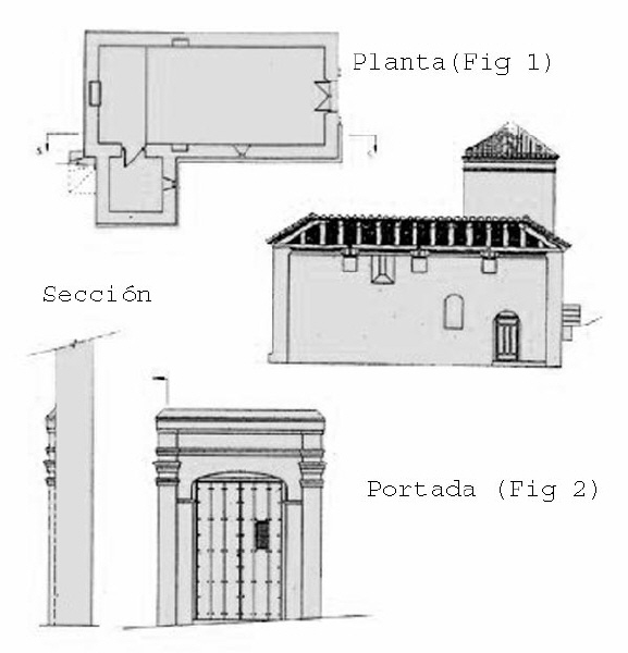 En los pies de la nave presenta una portada latericia con pilastras toscanas y entablamento que enmarcan una puerta con marco carpanel. (Fig. 2).