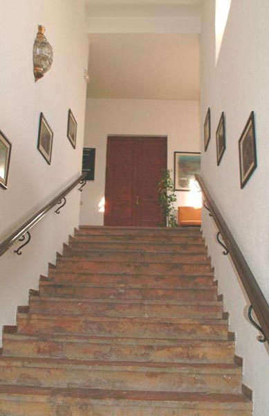 En el Interior hay un salón de sesiones de quince por casi cinco metros y escalera