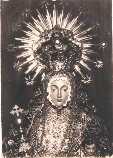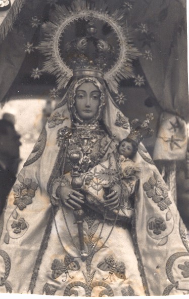 Y así, y sea este el primer dato de la historia. Ante el que autoriza y al recaudar fondos para el culto, en una de las calles de la ciudad, se detuvo un pobre, tuvo un mirar humilde y rebuscando afanosamente en su mugrienta ropa depositó en mi mano una moneda de diez céntimos, con estas palabras de oro: ¡Para la Virgen! ¡Qué profunda emoción y que hálito de cosa pura lo llenó todo. ¿Quién era, de qué vivía, cuantos eran sus dolores, sus pobrezas?. Seguramente iría achacoso por las calles, reuniendo trabajosamente, su donativo y, luego, con el temor de los Santos Ingenuos vino calladamente a entregar la ofrenda. Tembló su mano y quizá por primera vez sintió el rubor de su pequeñez. Pero tal vez sentiría un gran sosiego porque todas las Mieles del Corazón de la Madre fueron ese día para su pobrecito hijo menesteroso.