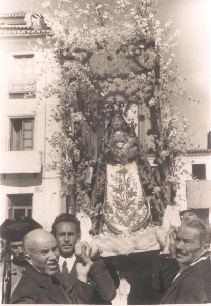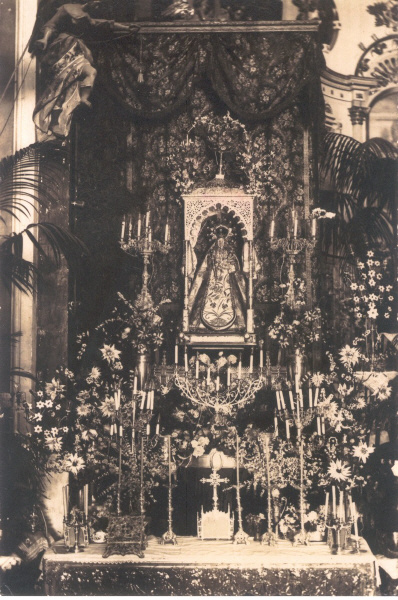 La Patrona presidió el templo parroquial de La Anunciación hasta el día uno de octubre, fecha en que fue trasladada a su santuario, donde fue recibida con un magnífico castillo de fuegos artificiales. Allí la esperaban las religiosas, que habían vuelto el 5 de julio de 1939 a la que consideran la primera casa de su Congregación.