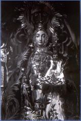 Los cetros de la Virgen y el Niño y la Medialuna donativo de la Srta. Dolores Faura. El cetro, medialuna y alfileres han sido hechos por el mismo joyero y el rostrillo en los talleres de la Joyería La Purísima de Granada.